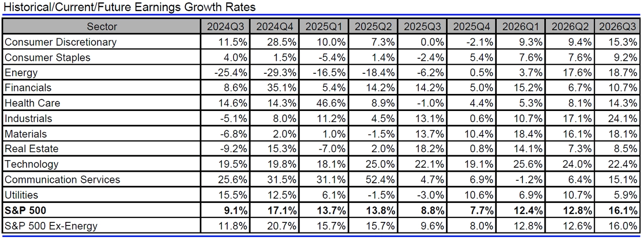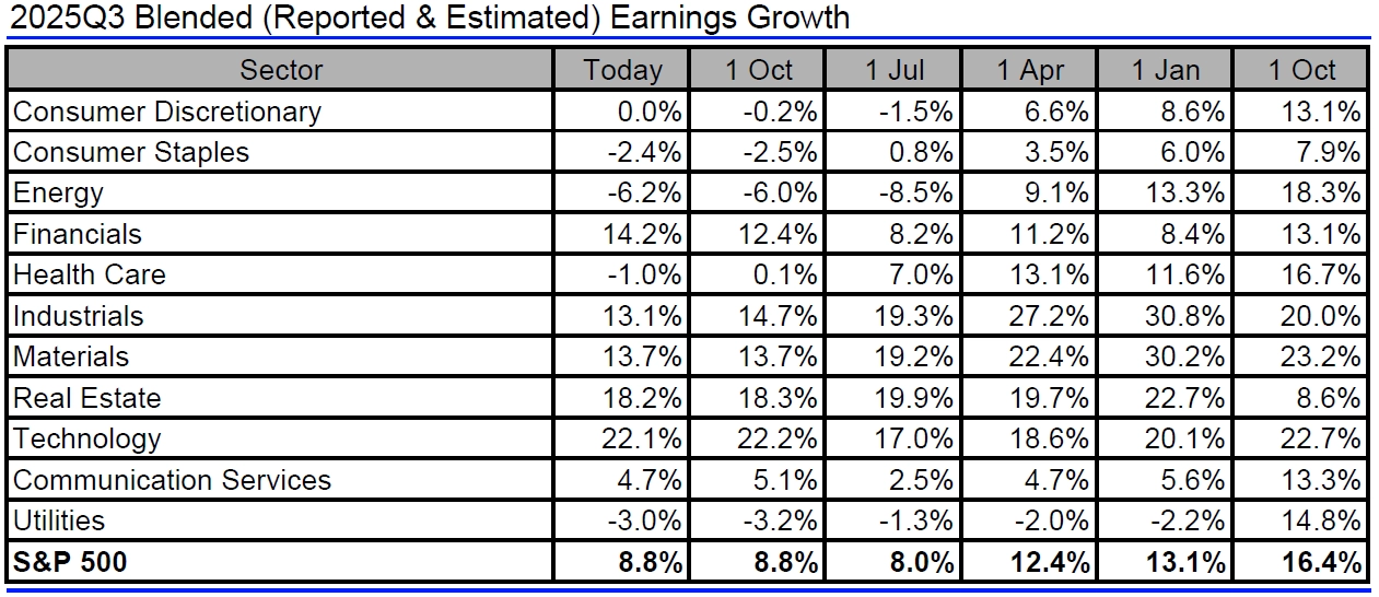 Jak se mění odhady vývoje zisků a tržeb amerických firem za 3Q2025?
