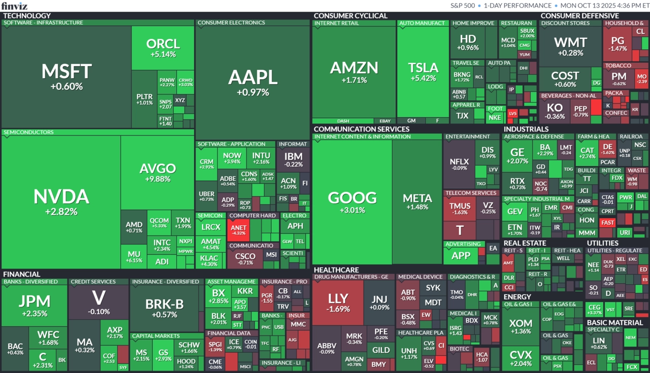 Z významných titulů posílily mimo jiné Oracle (+5,14 %), NVIDIA (+2,88 %) nebo Broadcom (+9,88 %), který oznámil oficiální spolupráci se společností OpenAI.