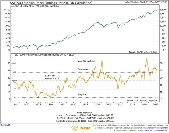 Jak už bylo zmíněno, akciový trh se mohl opřít mimo jiné i o solidní zisky firem a jejich růst. Ten byl ale o poznání pomalejší než růst cen akcií, což má za následek podstatné zdražení amerického akciového trhu. A to podle většiny běžně používaných ukazatelů. Vedle Shillerova P/E nebo poměru ceny akcií a tržeb (P/S) je nad 95. percentilem rozpětí od roku 1964 i P/E mediánové akcie z indexu S&P 500 (26,2), což je srovnatelné jen s dobou vrcholící internetové bubliny nebo úlevné rally po pandemii.