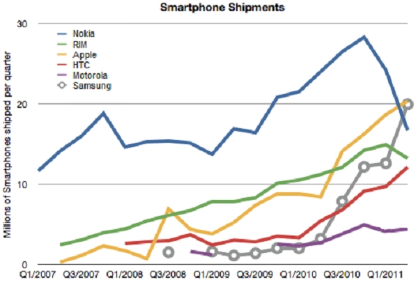 Jedním z těch, kdo nokie pohřbili, byl právě Apple. iPhone při svém představení v roce 2007 od základů změnil pohled na to, jak má telefon vypadat, jak se má ovládat a co má umět. Z Applu se díky iPhonu stal globální technologický lídr. Prezentace nových modelových řad iPhonu, ale i jiných zařízení, jako jsou tablety iPad nebo chytré hodinky Apple Watch, se těšily a těší obrovskému zájmu médií, geeků, ale i milionů obyčejných uživatelů.