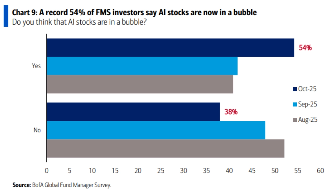 Před bublinou cen akcií firem spojených s umělou inteligencí varuje 54 % oslovených.