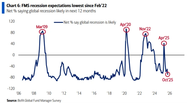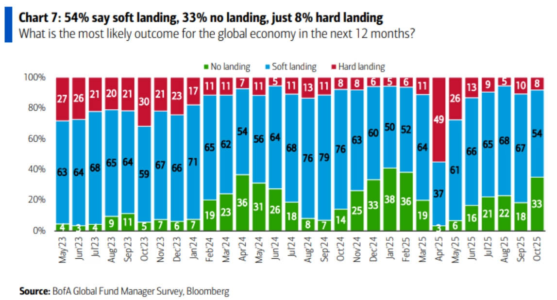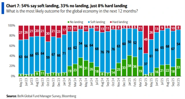 Souvisí to i s dalším poklesem obav o globální ekonomiku. Její tvrdé přistání čeká jen 8 % oslovených.