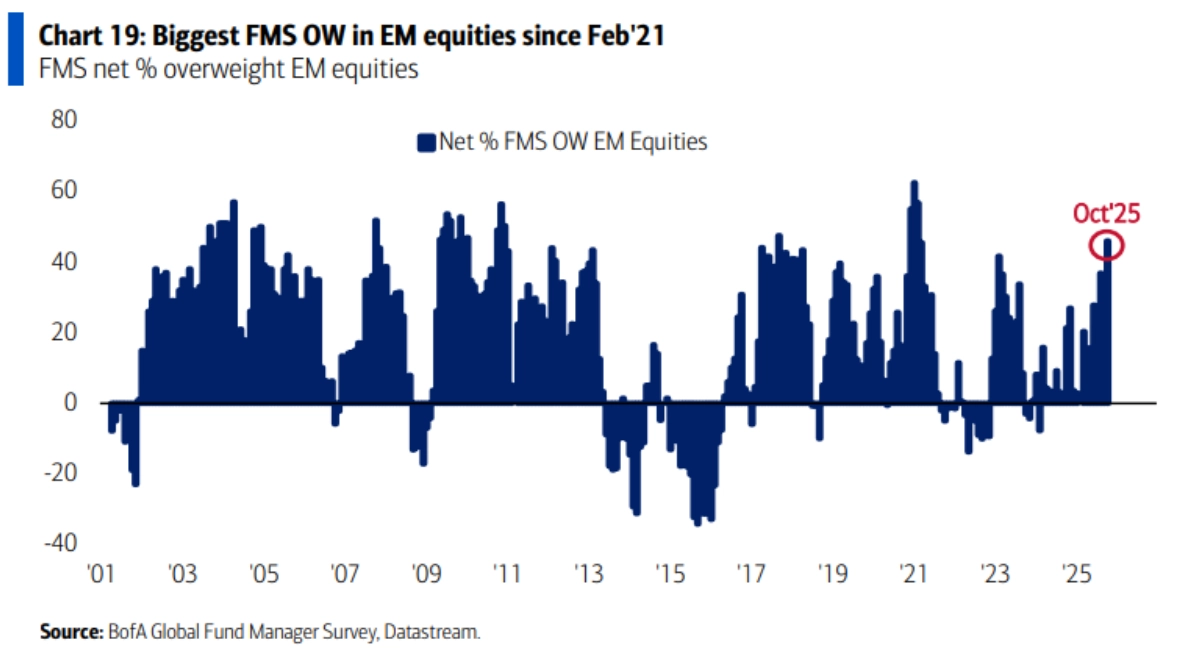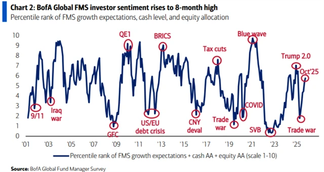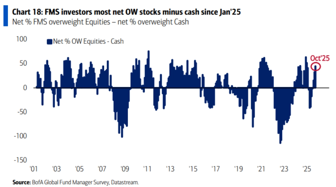 Míra alokace portfolií fondů do akcií na úkor hotovosti byla nejvyšší dokonce od ledna 2025.