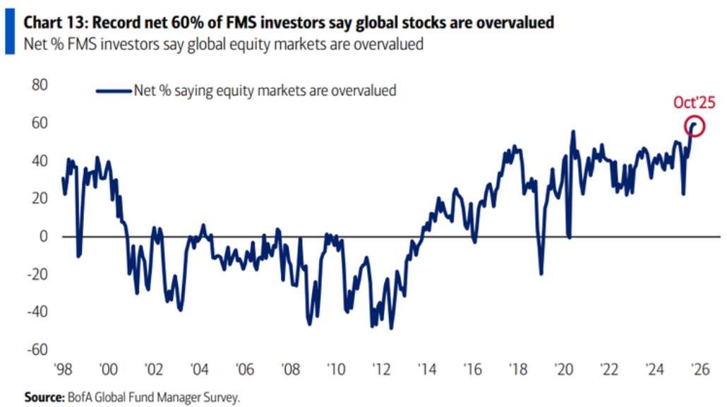 Rostou ale zároveň také obavy z vysokých cen aktiv. 60 % manažerů považuje globální akcie za nadhodnocené.