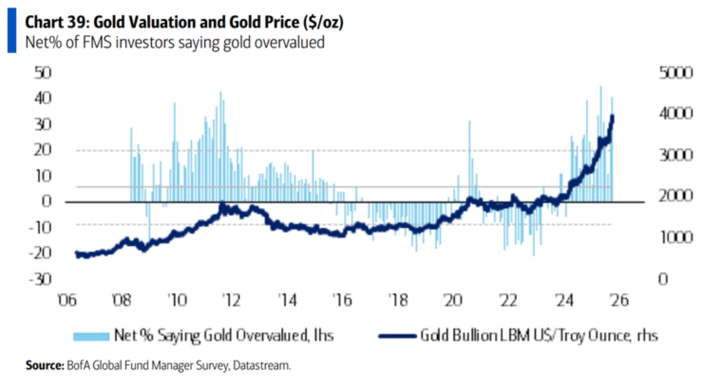 Průzkum Bank of America: Trhy jsou v RISK-ON režimu, ale největší horečka je na trhu se zlatem