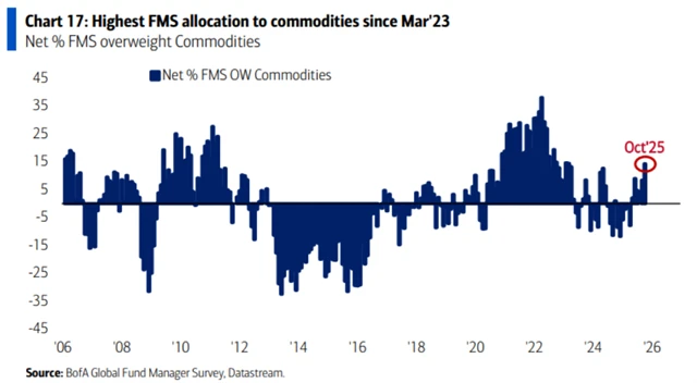 Sílí nicméně důvěra v růst cen komodit. Alokace do nich je nejvyšší od března 2023.