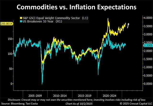 Vzhledem k tomu, že se ceny surovin propisují do cen v podstatě všech druhů zboží, je ale celkem dobře možné, že inflační očekávání začnou odstup stahovat.