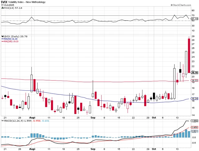 Index volatility VIX do čtvrtka vyletěl nad 25 a v pátek intradenně dokonce k 29. Pak se ale vrátil lehce nad 20. Vzhledem k tomu, že poklesy indexu S&P 500 během růstu VIX nebyly nijak výrazné, není volatilita aktuálně žádným jasným prodejním signálem. Dokud je S&P 500 nad 6 500, jeho nastavení zůstává býčí.