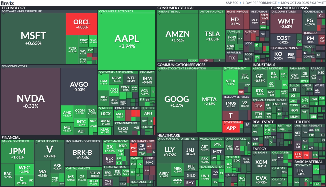 Trhy tak pokračovaly v odrazu ode dna po volatilním týdnu, během kterého náladu ovlivnily napětí mezi Spojenými státy a Čínou, obavy z problémových úvěrů regionálních bank a pokles cen některých technologických titulů spojených s umělou inteligencí. I přes tyto otřesy akcie nakonec uzavřely minulý týden v plusu, což naznačilo návrat důvěry investorů.