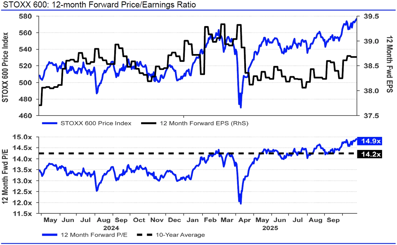Jak je oceněn evropský akciový index STOXX Europe 600?