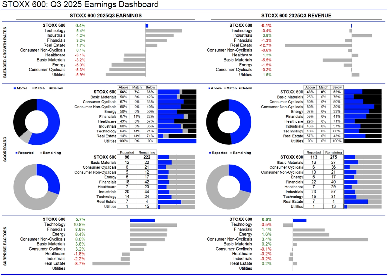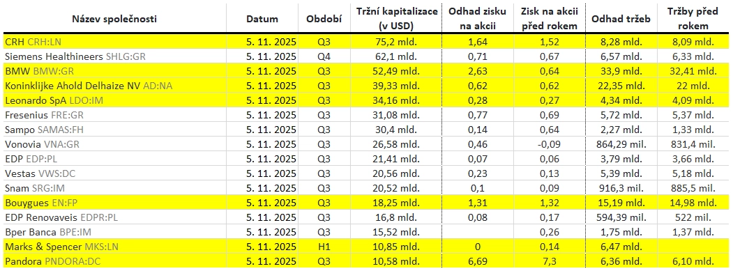 Jaká překvapení přinesly oznámené výsledky evropských firem za 3Q2025?