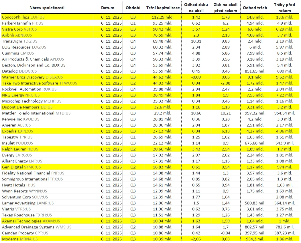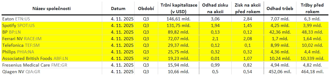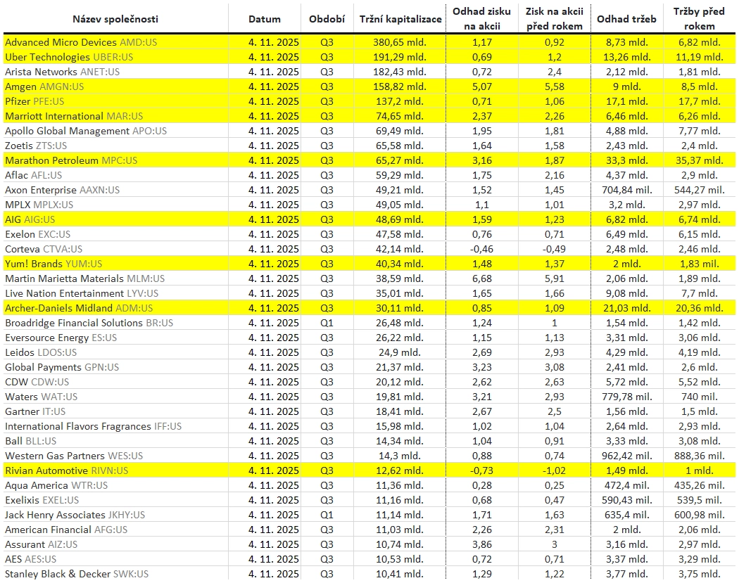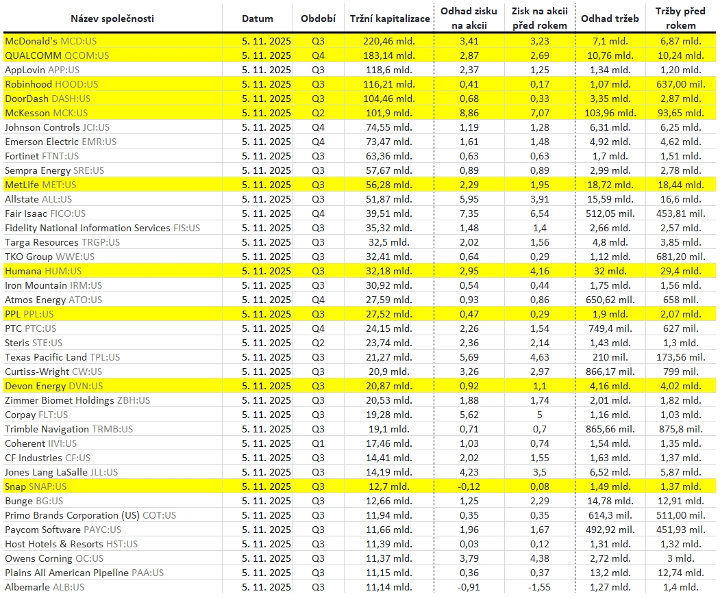 Poznámka: Odhady analytiků jsou aktuální k 30. 10. 2025.