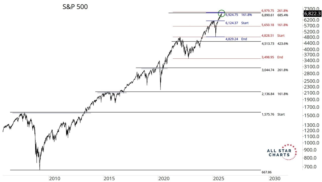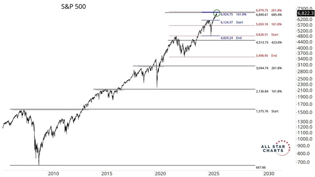A na závěr vlastně jen pro ilustraci trochu matematiky v dresu technické analýzy. Fibonacciho úrovně nejsou žádná magická formule, na dlouhodobém grafu ale naznačují, že hladina 6 900 až 7 000 bodů indexu S&P 500 může být opravdu hodně důležitá.