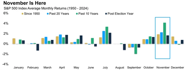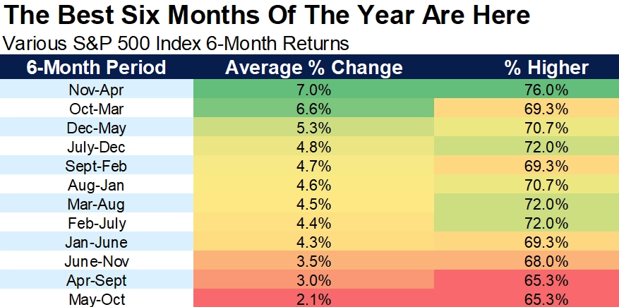 Index S&P 500 letos během historicky nejslabšího šestiměsíčního období (od května do října) zaznamenal historicky vůbec nejvyšší zhodnocení (přes 22 %). Do naopak nejsilnějšího "klouzavého půlroku" tak vstupuje vlastně v bezprecedentní situaci.