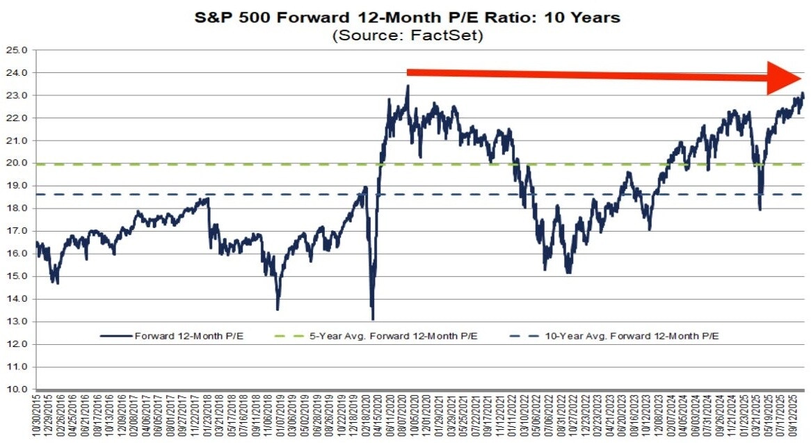 Je samozřejmě jasné, že z historického hlediska jsou valuace amerických akcií opravdu vysoké, podle některých ukazatelů dokonce nejvyšší, jaké kdy byly. Podle dat společnosti FactSet se forwardové P/E indexu S&P 500 drží zhruba na 22,9. To je znatelně nad desetiletým průměrem 18,6. Pravda ale je, že samotné valuace nejsou spolehlivý signál toho, co se bude na trhu v nejbližší době dít. Dlouhodobě ale vysoké valuace historicky znamenají menší růstový potenciál akcií, na což celkem logicky upozorňuje silný tábor akciových skeptiků. Už hezkých pár let, dodejme jedním dechem.