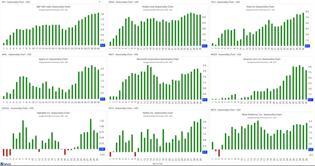 Listopad je sám o sobě pro akcie mimořádně úspěšný měsíc. A to nejen pro celý index, ale i pro největší společnosti v něm zahrnuté.