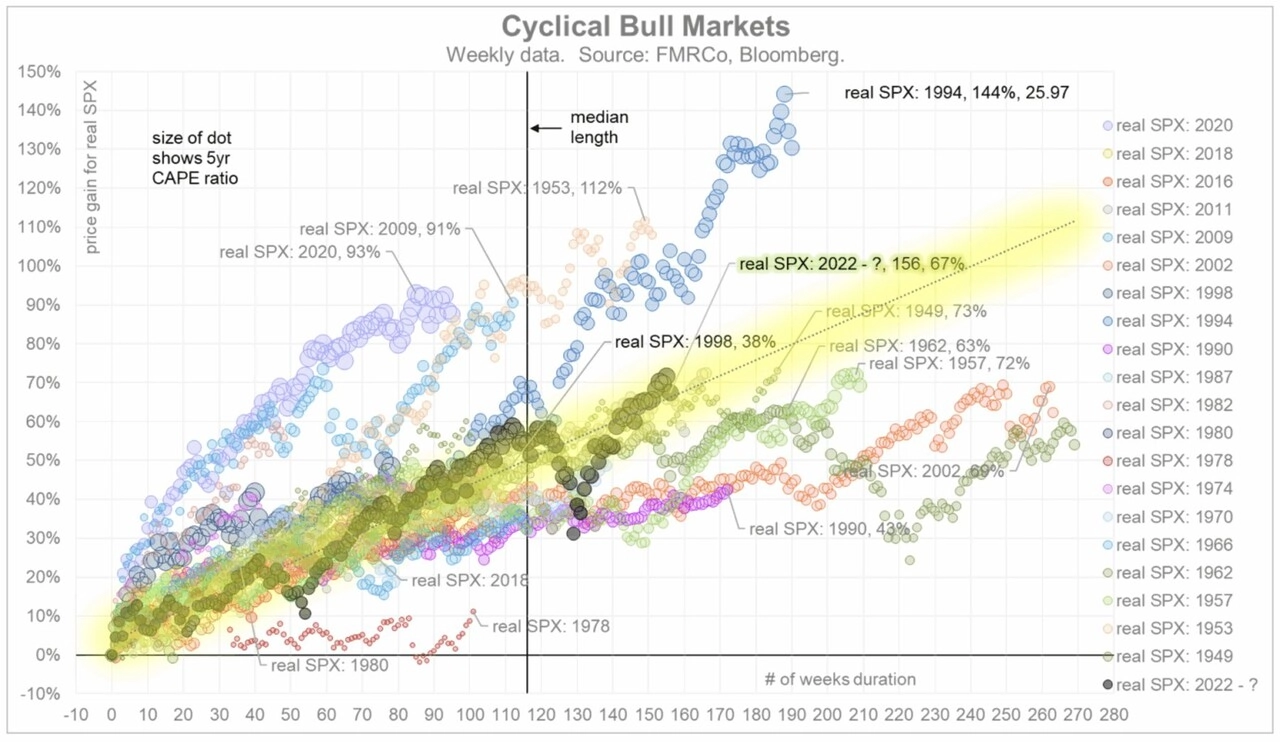 Americký akciový index S&P 500 pokračuje v býčím trendu, aktuálně už ukusuje ze čtvrtého roku. Jak vypadá srovnání s předchozími růstovými etapami?