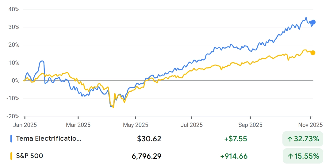 I proto se Tema Electrification ETF jeví jako velice zajímavá alternativa a po necelém roce existence fondu na burze i jako nadprůměrně výnosná a méně volatilní možnost pro investory, kteří se chtějí svézt na vlně AI revoluce, ale namísto různých softwarových trendů a cloudových služeb chtějí vložit peníze do samotné infrastruktury, na které celá revoluce bude probíhat.