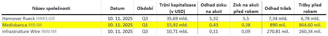 Poznámka: Odhady analytiků jsou aktuální k 6. 11. 2025.