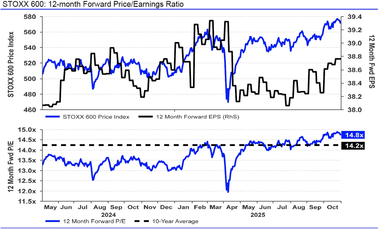 Jak je oceněn evropský akciový index STOXX Europe 600?
