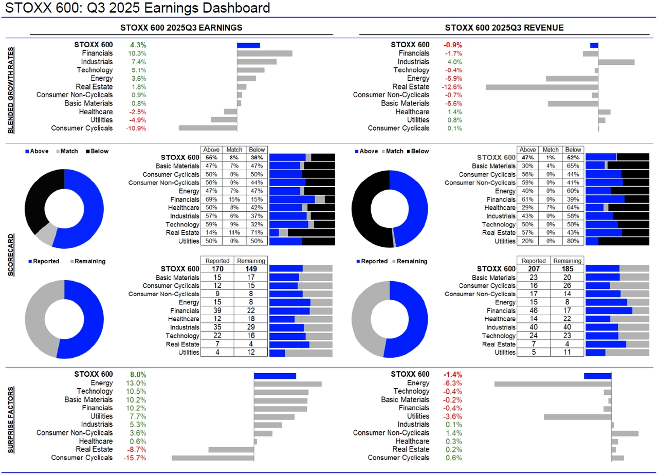 Jaká překvapení přinesly oznámené výsledky evropských firem za 3Q2025?