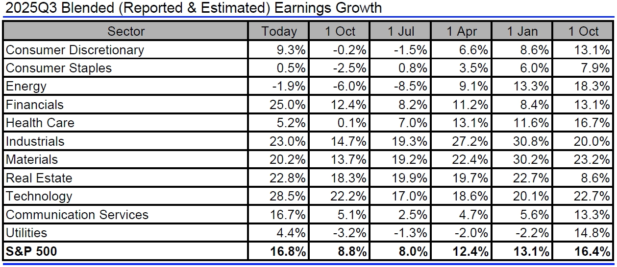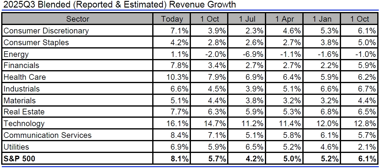 Jak se mění odhady vývoje zisků a tržeb amerických firem za 3Q2025?