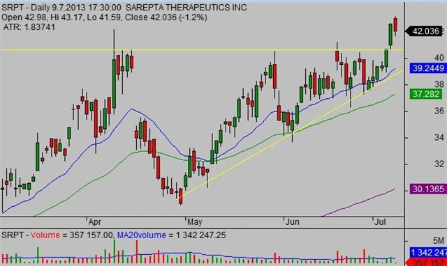 Akcie společnosti Sarepta Therapeutics si udržují růstový trend. V posledních dnech překonaly i důležitou hranici odporu u zhruba 40,5 USD. Cesta k novým maximům je volná.