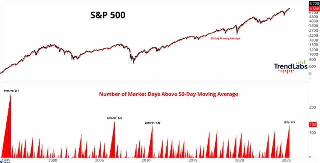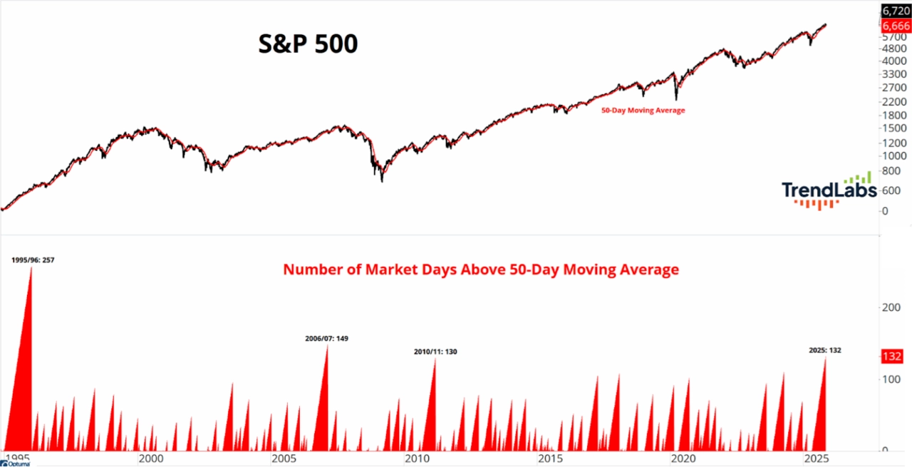 Díky silnému závěru obchodování v pátek 7. listopadu se index také udržel nad 50denním klouzavým průměrem. Pokračuje tak v jedné z nejdelších sérií za desítky let.
