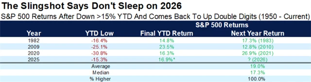 Volatilita je zkrátka daň, kterou investoři platí za dlouhodobé zhodnocení. V případě amerického akciového trhu velice solidní kladné zhodnocení. Krátkodobé poklesy jsou běžná součást obchodování, trpělivost ale nakonec bývá odměněna. Letošní rok přitom stále může vstoupit do historie jako jeden z mála, kdy S&P 500 průběžně spadl o více než 15 %, ale nakonec si připsal dvouciferný procentuální zisk. Tyto roky (zatím byly jen tři, není to tedy zrovna dechberoucí statistika) mají i další společný rys, a sice ten, že následující rok byl opět pro akcie úspěšný.