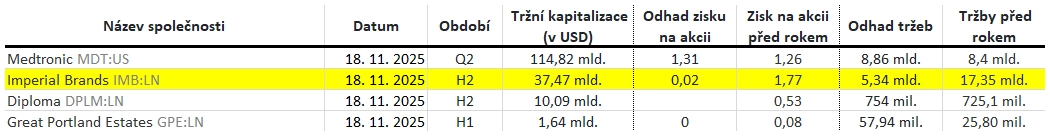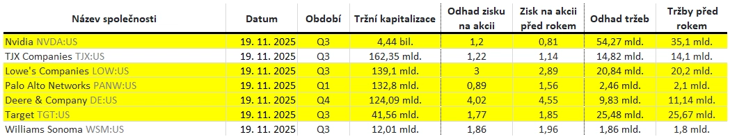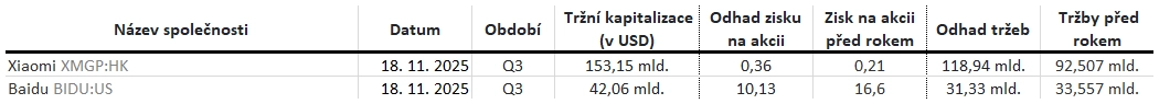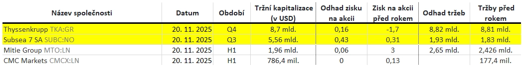 Poznámka: Odhady analytiků jsou aktuální k 13. 11. 2025.