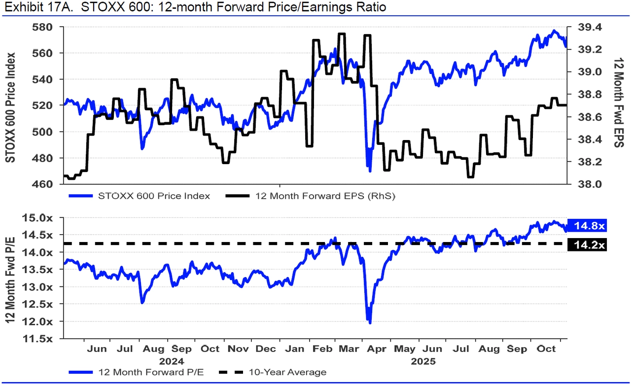 Jak je oceněn evropský akciový index STOXX Europe 600?