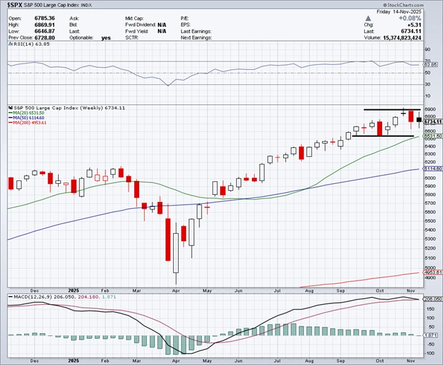 Index S&P 500 zakončil týden na zelené nule. Byl páteční vývoj (dalším) kolem nákupů po vlastně celkově mírném, ale rychlém poklesu? Uvidíme. Index má za sebou každopádně další týden bez nového maxima a s jednou hlubší denní ztrátou a přiblížením se k minimu z předchozího týdne okolo 6 625.