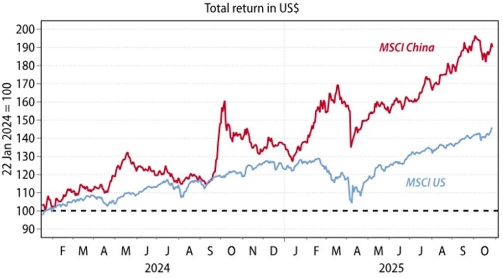 Čínské akcie zažívají comeback. Válcují přitom dokonce i hvězdnou Ameriku na AI steroidech. A co více, rally čínských akcií nastartovaná v roce 2024 může mít to nejlepší teprve před sebou.