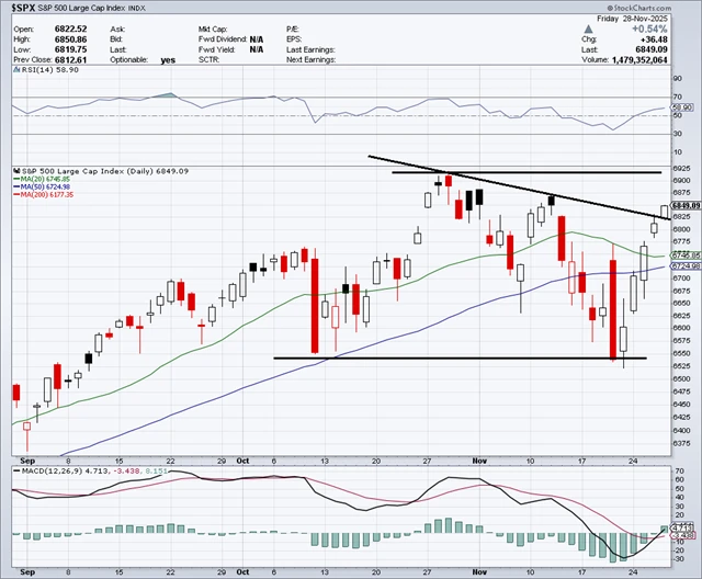 Týden na trzích podle burzovních grafů: Býci odmítli hlubší pullback a zajistili mírný listopadový růst indexu S&P 500