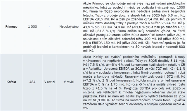 A teď už tradiční přehled jednotlivých námi sledovaných titulů na burze v Rybné.