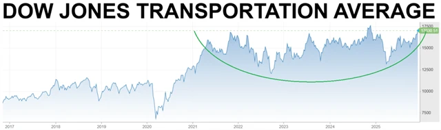 Čtyřletá konsolidace by se mohla stát odrazovým můstkem pro další růst, pokud benchmark prorazí na nové historické maximum a tento pohyb potvrdí. Naplnil by se tím navíc jeden z důležitých principů takzvané Dowovy teorie. Podle té by akcie dopravních společností měly potvrzovat trend růstu (nebo poklesu) cen akcií firem z průmyslového sektoru, který je pro potřeby srovnání zastupován tradičním indexem Dow Jones Industrial Average (DJIA). Aby na tom ekonomika a s ní akciový trh byly dobře, nestačí jen vyrobit zboží, je potřeba ho také dopravit k zákazníkům.