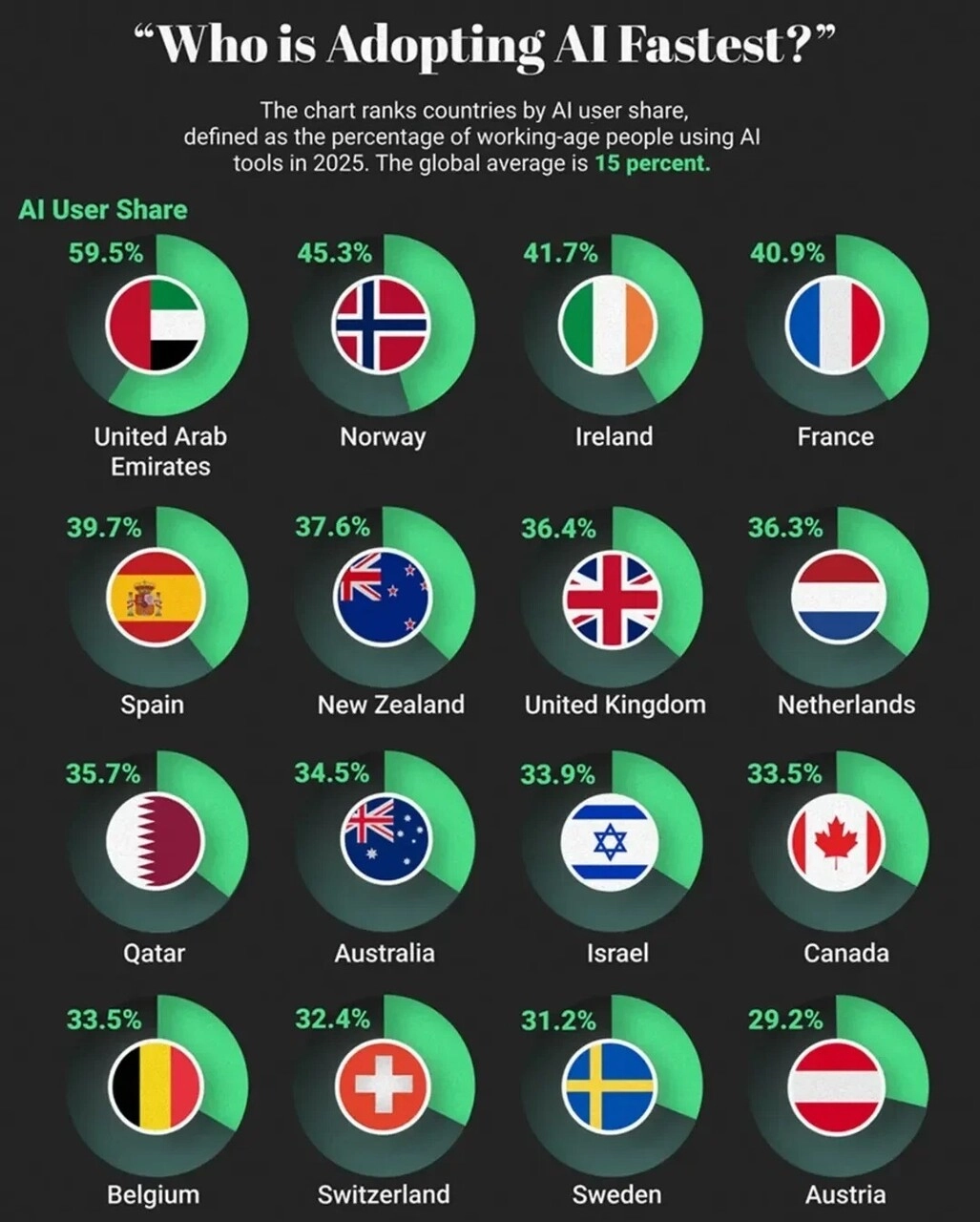 Adopce umělé inteligence ve světě pokračuje. Překvapivé ale je, že nejrychleji neprobíhá ve Spojených státech.