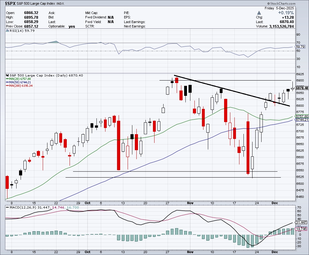 Úzká denní rozpětí a pohyb pod historickým maximem. Takový byl ve zkratce první prosincový týden, během kterého americký akciový index celkově vzrostl o 0,30 %. Historické maximum opět neposunul, ačkoli to závěrečné z 28. října během pátku otestoval.