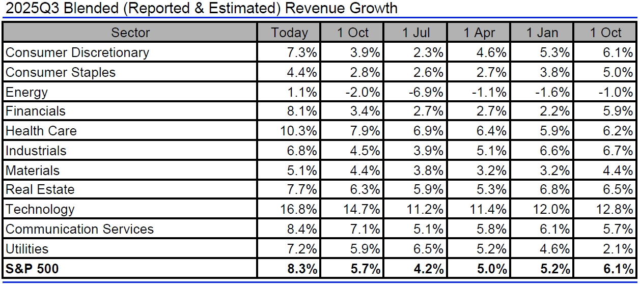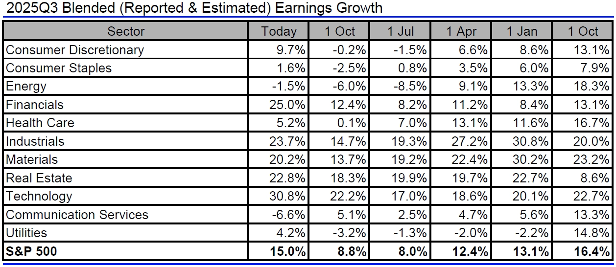 Jak se mění odhady vývoje zisků a tržeb amerických firem za 3Q2025?