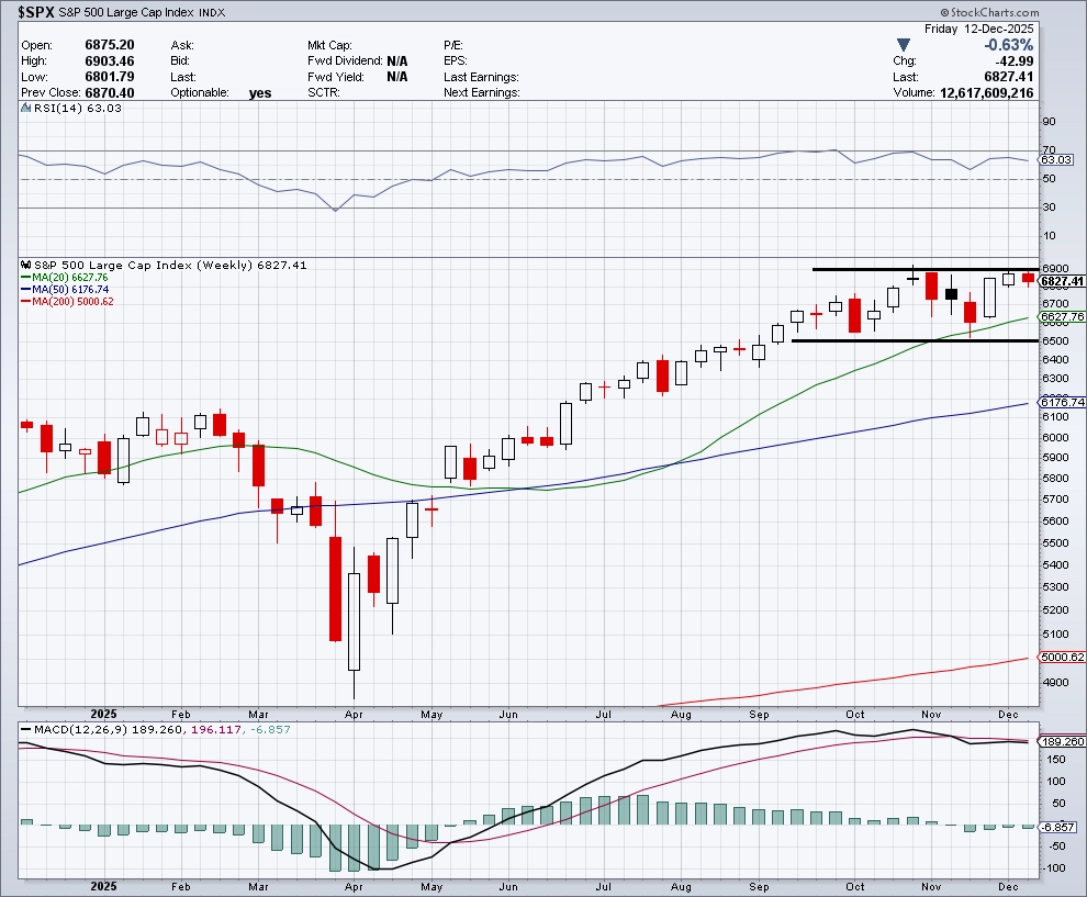 Americký akciový index S&P 500 v pátek nepotvrdil vzestup na nová maxima, a zůstává tak v pásmu 6 500 až 6 900. Býčím signálem by bylo uzavření nad 6 920, kde jsou historická intradenní maxima.