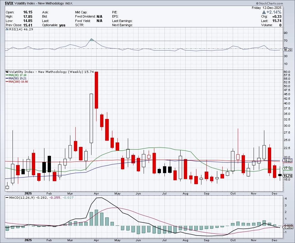 Index volatility VIX za týden stoupl o nevýrazných 2,14 %. Drží se ale u minim a pro akcie jeho vývoj znamená spíše optimistický výhled.
