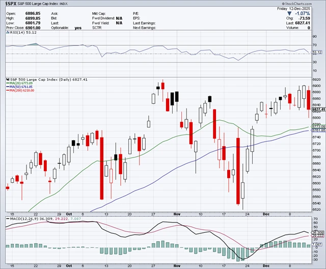 Index S&P 500 navzdory vzestupu na nový závěrečný rekord znovu nedokázal prorazit nad rezistenci, jakkoli to po zasedání Fedu vypadalo poměrně nadějně. Od začátku roku index přidává 16,08 % a čeká ho poslední předvánoční týden. Od 24. prosince se pak letos počítá období sedmi obchodních dnů, během kterých se historicky akciím převážně daří (Santa Claus rally).