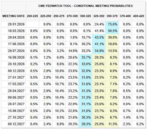Po třetím snížení sazeb Fedu v řadě se pozornost trhu stáčí k tomu, jak se bude měnová politika v USA vyvíjet v roce 2026, a to hlavně v kontextu konce mandátu Jeromea Powella v čele Fedu v polovině května. Americký prezident Donald Trump vybírá Powellova nástupce a netají se tím, že chce do čela instituce nominovat takzvanou holubici, tedy člověka nakloněného dalšímu uvolňování měnové politiky.