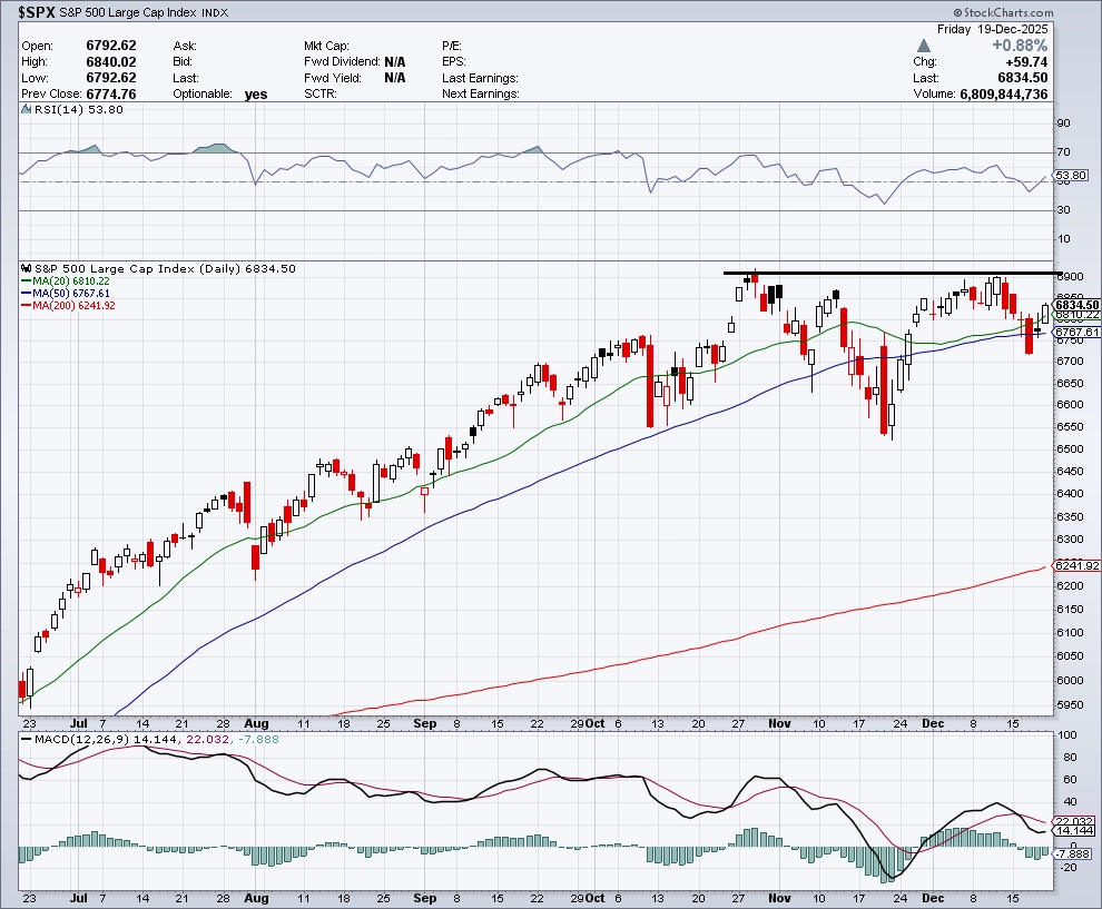 Týden na trzích podle burzovních grafů: Předvánoční zelená nula indexu S&P 500