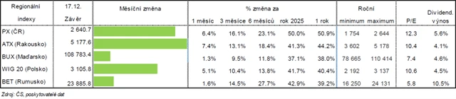 Prosincová strategie pro akcie na pražské burze: Růst pokračuje