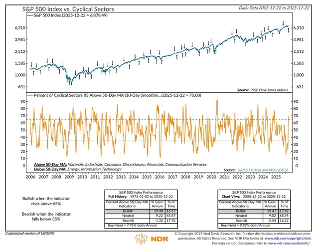 Americký akciový index před Štědrým dnem vylepšil historické maximum, když podruhé uzavřel nad 6 900 body. Jde o výrazný posun od doby před zhruba pěti týdny, kdy testoval podporu nad 6 500. Za stejné období se navíc index VIX, který sleduje kolísavost cen na americkém trhu, svezl o skoro 50 % a je na letošním minimu. Za tak krátkou dobu je to hodně výrazné "uklidnění", před koncem roku vítané.