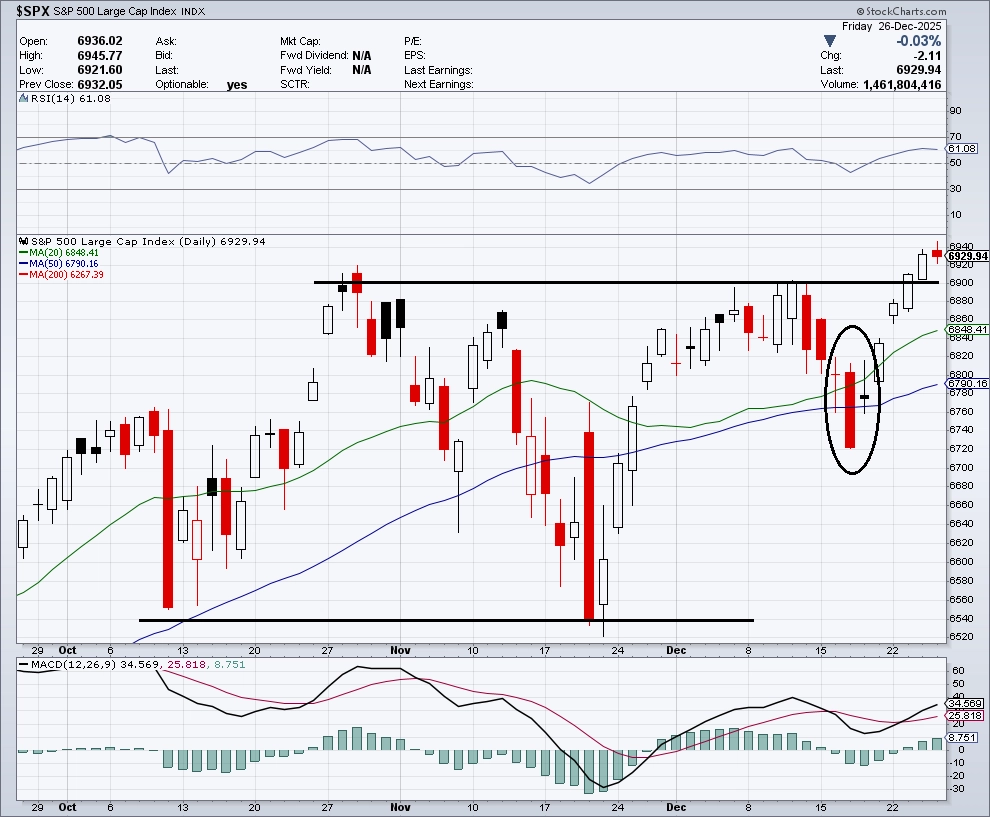 "Index S&P 500 překonal rezistenci a je na novém rekordu. Sezónní pattern (růst zhruba od poloviny prosince) zafungoval, ve středu pak začalo 'okénko' na takzvanou Santa Claus rally (letos období pro ni skončí až v pondělí 5. ledna). Od začátku roku index přidává 17,8 %. Index volatility VIX za týden klesl o 8,79 % a je na letošním minimu. Pro akcie je jeho úroveň jednoznačně příznivá," napsal v pravidelném technickém komentáři k dění na americkém akciovém trhu opční obchodník Josef Košťál.