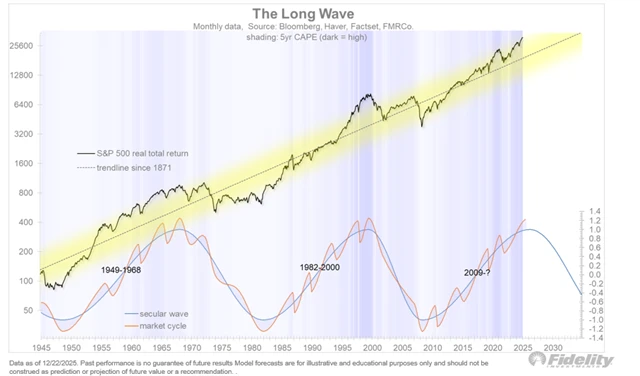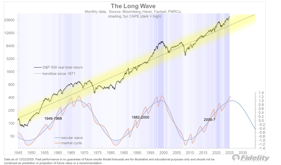 Dlouhodobé investory technické definice a poklesy o pětinu ale většinou až tolik nezajímají. Podstatné pro ně jsou dlouhodobé (sekulární) trendy. Ten aktuální býčí přitom trvá už ode dna v březnu 2009. V tomhle případě jsou už tedy ve hře narozeniny sedmnácté, a to za zhruba dva měsíce. Vlny na dlouhodobém grafu ale zároveň naznačují, že je tenhle sekulární býčí trh už ve svých závěrečných fázích.