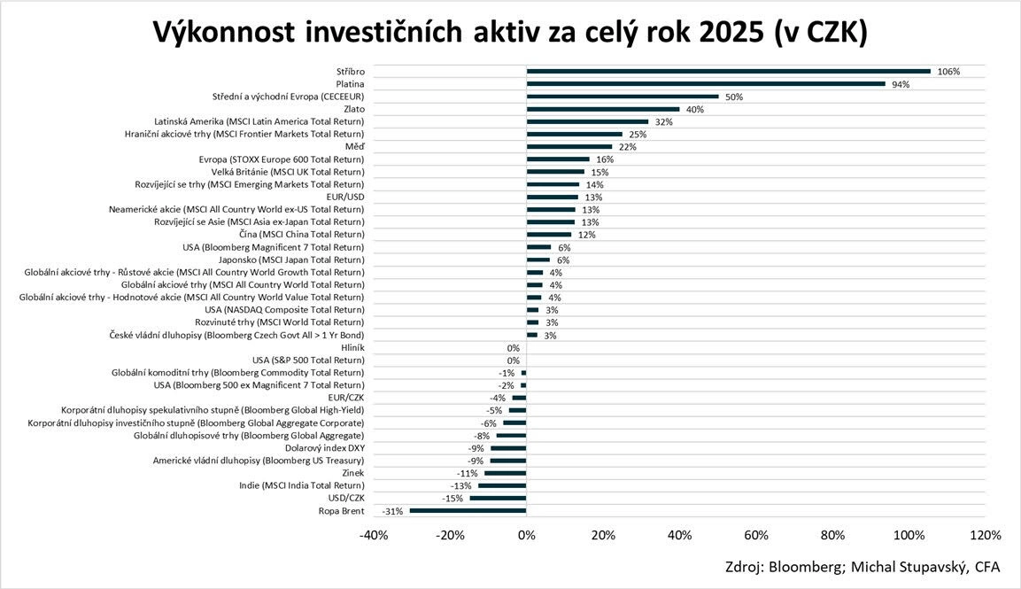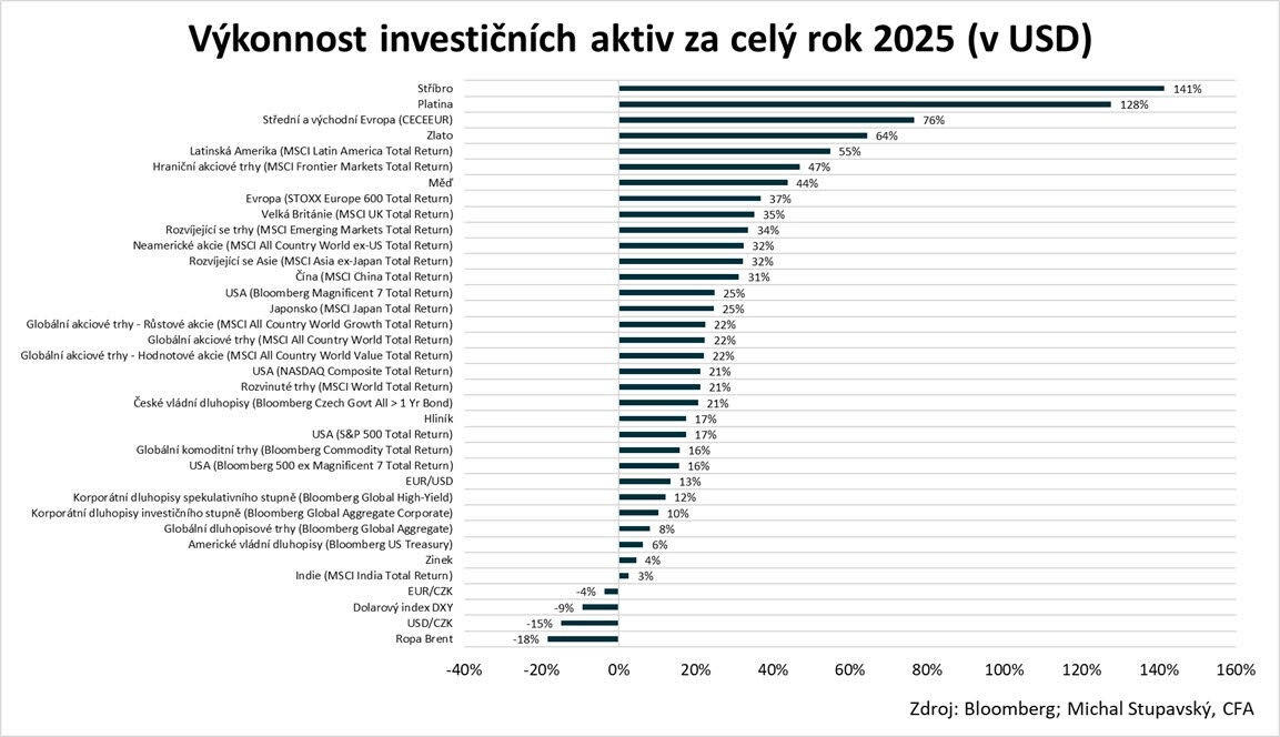 Hurleyho pohled určitě není většinový, to je jasné. Jak jsem už ale zmínil, konsenzus na trhu je takový, že americké akcie čeká další dobrý rok. Jestli jeden z posledních v rámci sekulárního býčího trendu, nebo čtvrtý, případně dokonce teprve první a druhý v rámci trendu nového, může být vlastně jedno. Pro investory, ve kterých je trochu toho kontrariánství a podezíravosti v situaci, kdy se většina na něčem celkem jasně shoduje, pak můžou být výhledy na letošní rok motivací zkusit "vsadit" na něco jiného než posílení amerických akcií. Výběr mají široký.