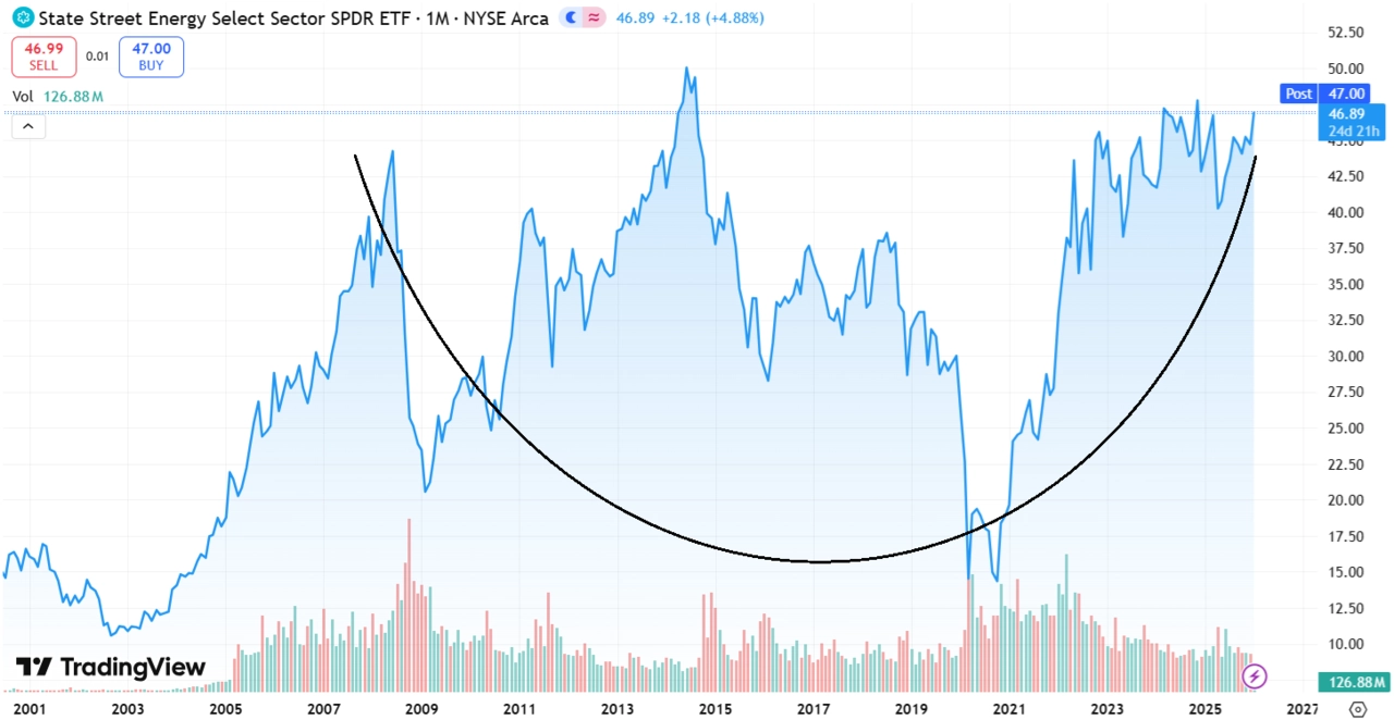 Americké energetické tituly patří od finanční krize v roce 2008 k nejvíce přehlíženým segmentům trhu. Zatímco technologické firmy za tu dobu vyrostly o stovky i tisíce procent, energetický sektor v průměru stoupl jen o 2–3 % ročně. Pro spoustu investorů se stal tak trochu "mrtvou zónou". Právě tahle dlouhodobá nuda a "výnosová frustrace" je ale zajímavá."Americký energetický sektor má za sebou zhruba 17 let konsolidace, což z něj z hlediska technické analýzy dělá hodně zajímavé zboží," říká Alfonso De Pablos, hlavní analytik All Star Charts. "Tak dlouhá období stagnace často předcházejí výrazným a strukturálním změnám ve vedení širšího býčího trendu na akciovém trhu."